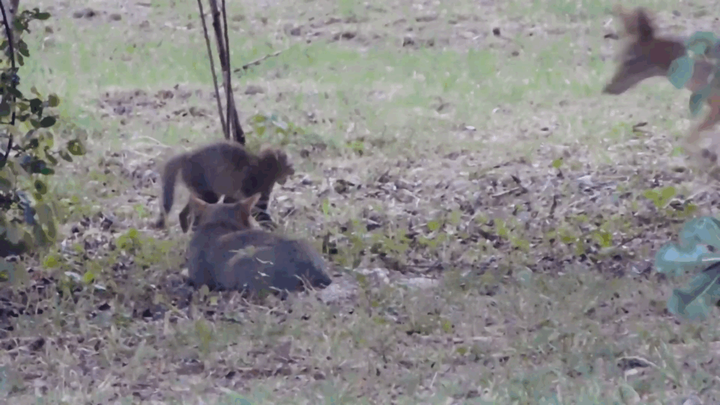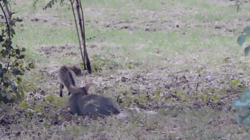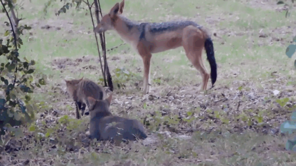 It didn’t have the option to get too close again, but the kitten was so outraged that the jackal had come closer that it charged forward a little as if to attack it for real. The sudden burst of speed which the kitten summoned finally intimidated the jackal enough to scare it away.