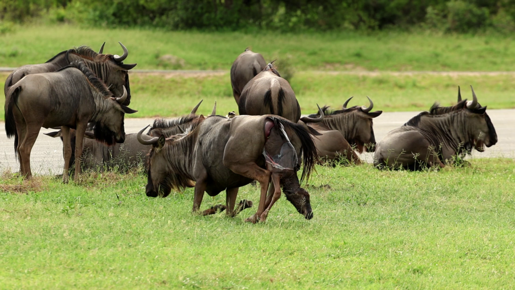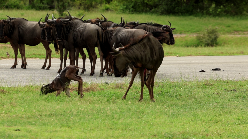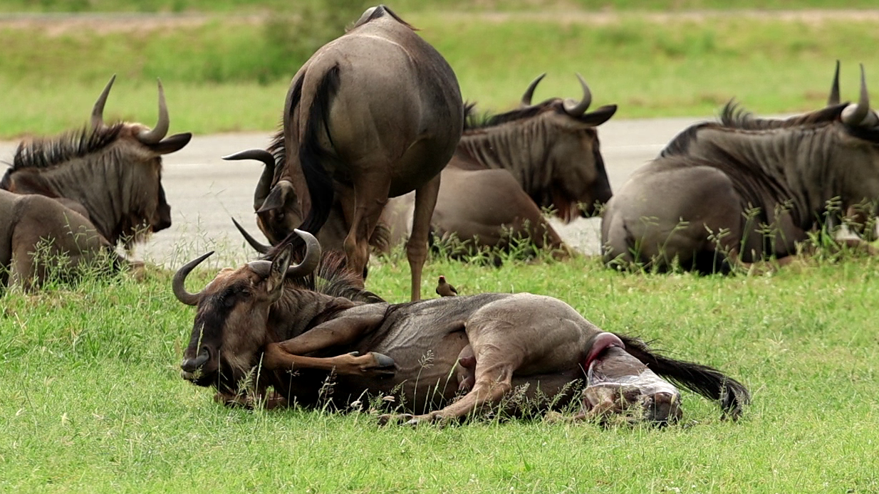 As we join the action in David’s video, we see something few have the privilege to witness. A female wildebeest lies on her side in the process of giving birth. Exhausted, we see her chest heave as she summons her energy.