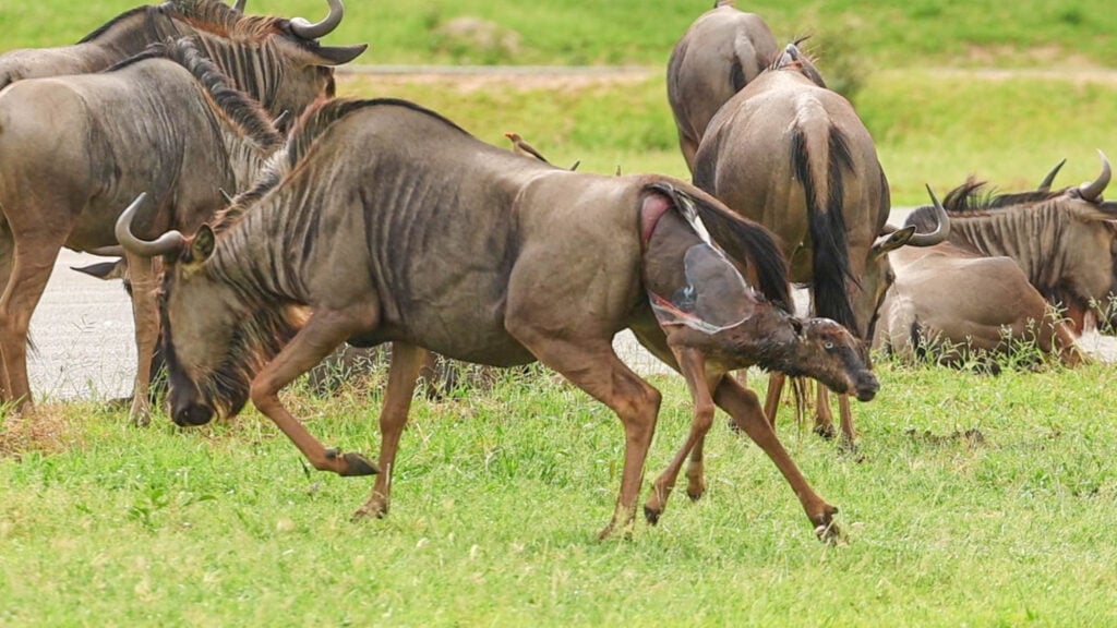 When a guide stopped next to a herd of wildebeest, little did he realise the miracle he was about to witness. When he realised what a special moment was unfolding, he trained his camera on the action for us all to enjoy.