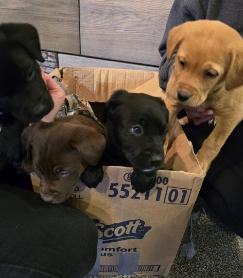 “Sawyer is a shy but endearing puppy, still adjusting to life outside of the puppy mill where he came from. While he may be timid at first, his quiet, sweet personality hints at the loving companion he’s meant to be,” his Shelterluv profile reads.