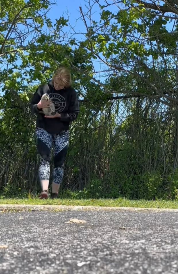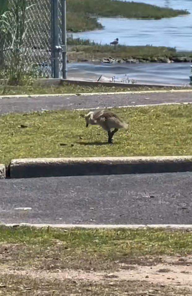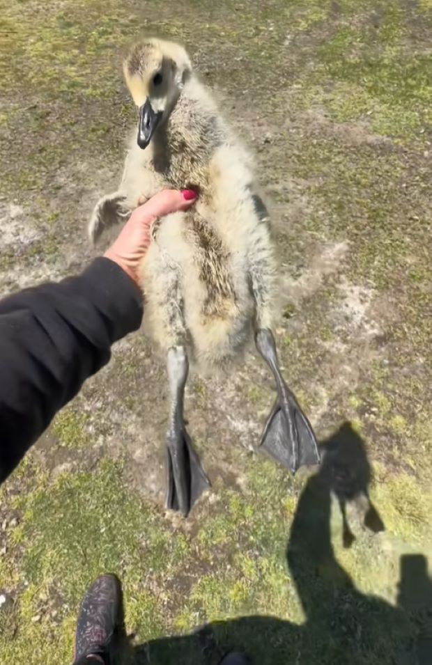 Stracher carefully approached the gosling and gently picked it up. The bird made no effort to resist, almost as if it instinctively understood she was there to help. Upon examining it, she noticed something unusual about its feet. They didn’t appear to be normal, indicating that the gosling needed immediate medical attention.
