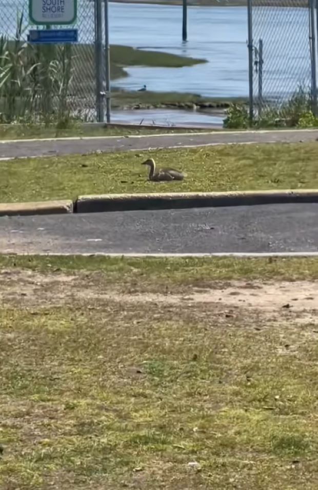 As you get closer, the reality becomes clear. It isn’t a large animal but a fragile gosling, struggling and in desperate need of care. Recognizing the urgency, you decide to call someone who can provide the right help.