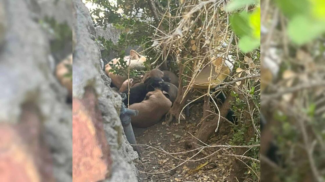 Dumped In Bushes, The Puppies Were Guarded By Their Mama