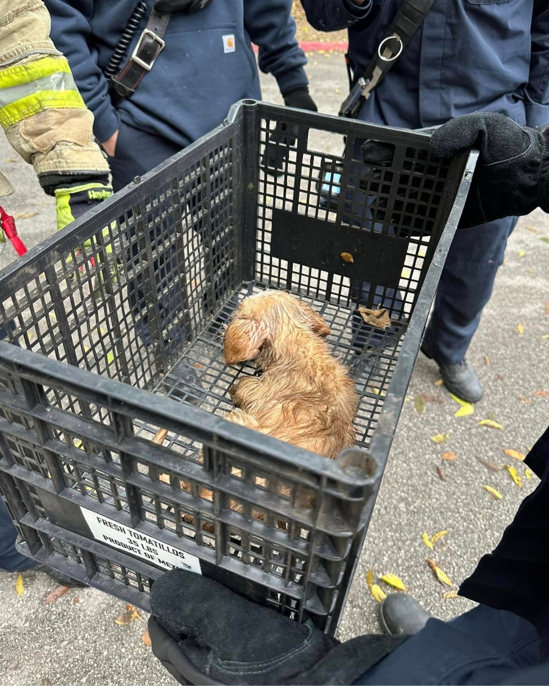 “The puppy, who we now call Poinsettia, kept slipping deeper into the drain until one firefighter bravely climbed down and managed to rescue her,” wrote Austin Pets Alive on Facebook.