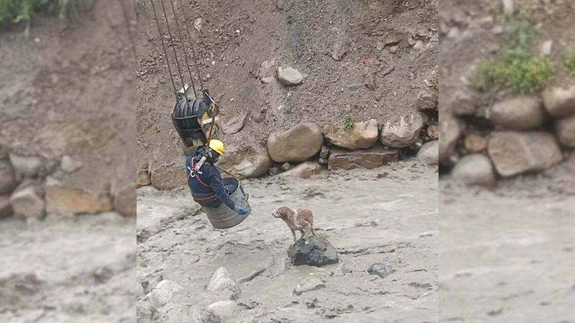 The river nearby was raging the whole time due to bad weather, and a dog was stranded in it and couldn’t move, so the workers realized that they had to help him somehow.